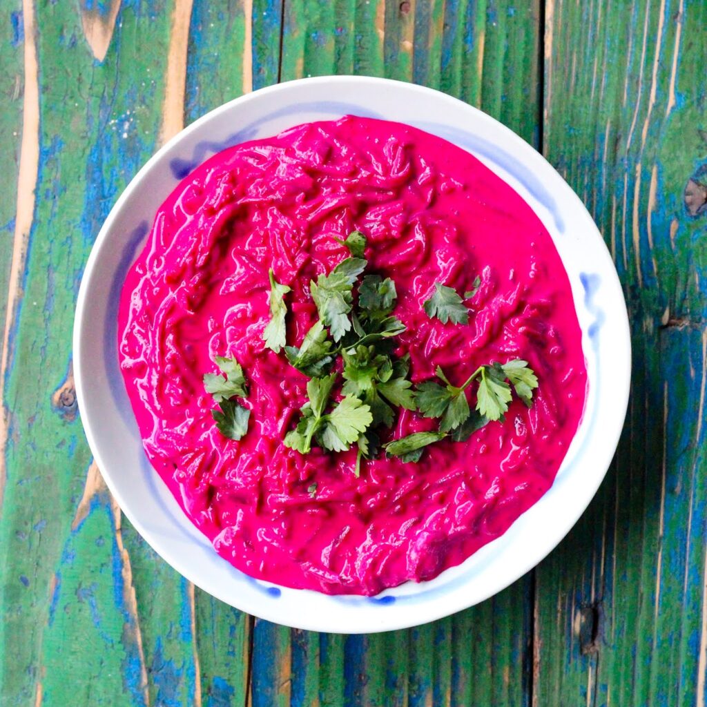 Bietensalade met soja yoghurt